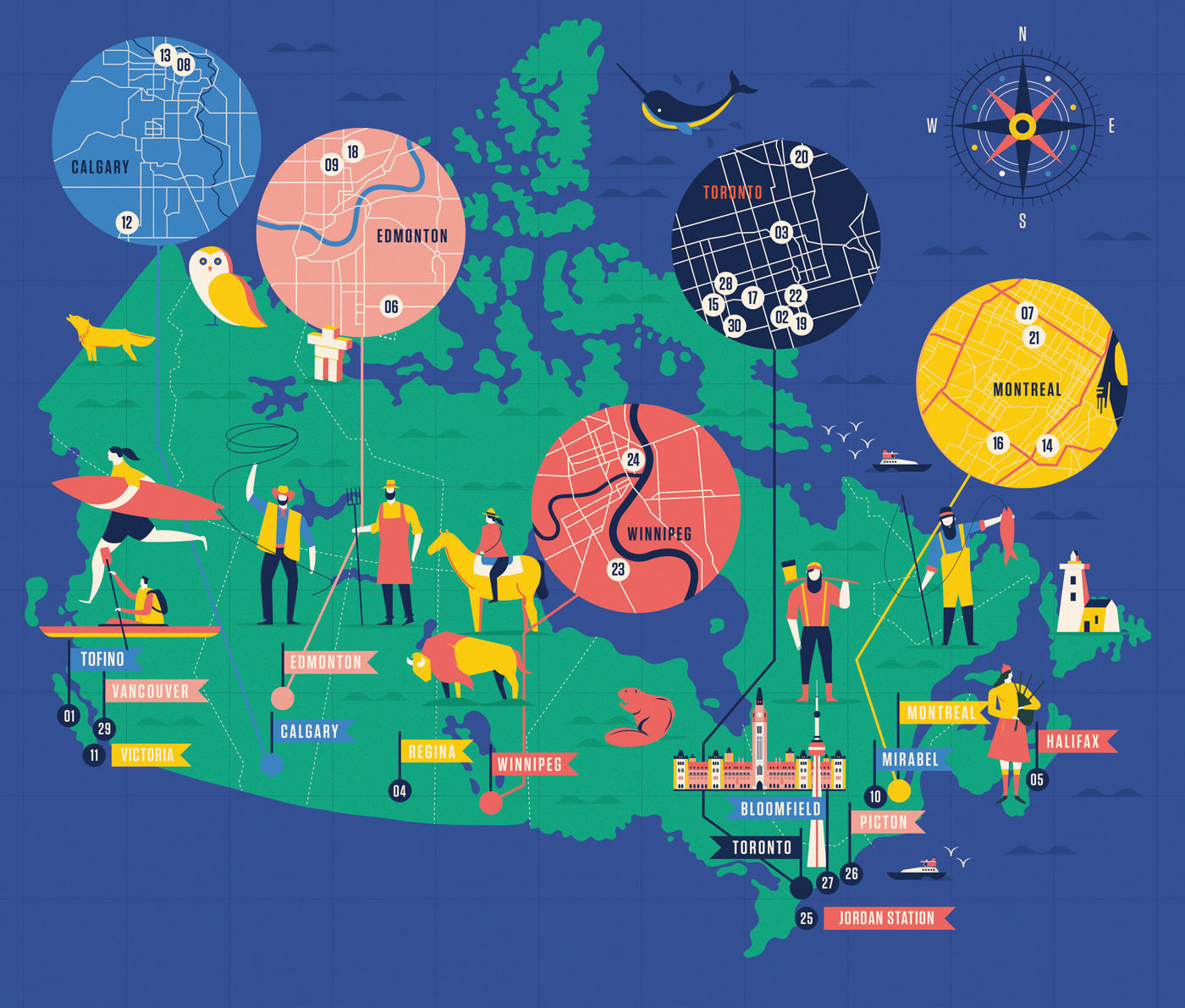 I created this map as a pullout section in the Air Canada enRoute Magazine September 2018 issue, which shows all the best new restaurant locations in Canada. Always love creating a map illustration.